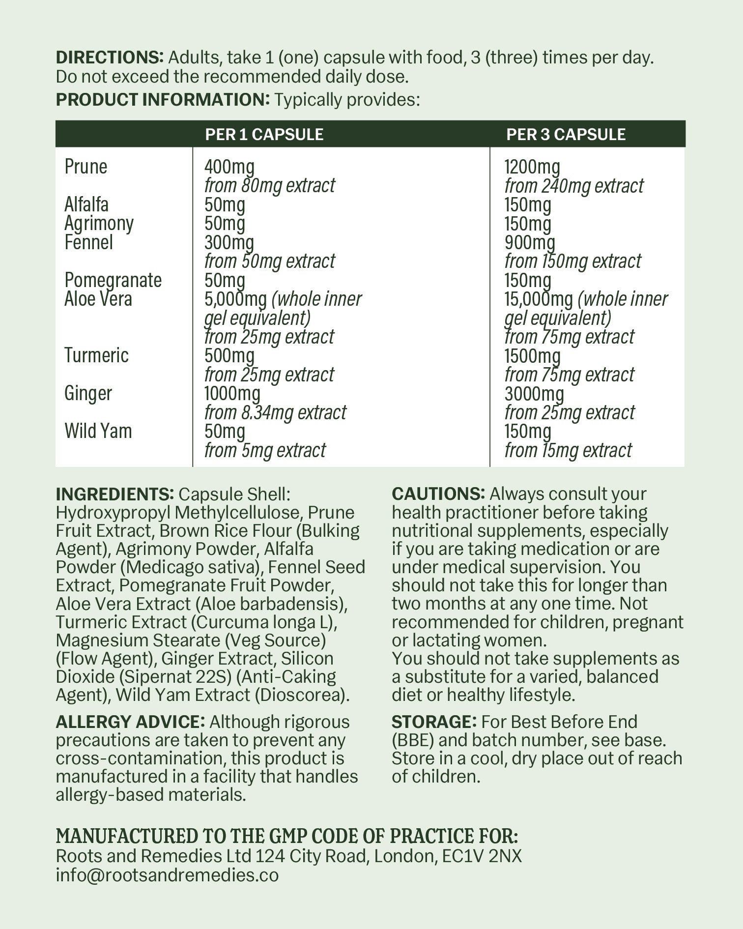 Aloe Vera 5,000mg equivalent per capsule; supports bowel movement & gut hydration